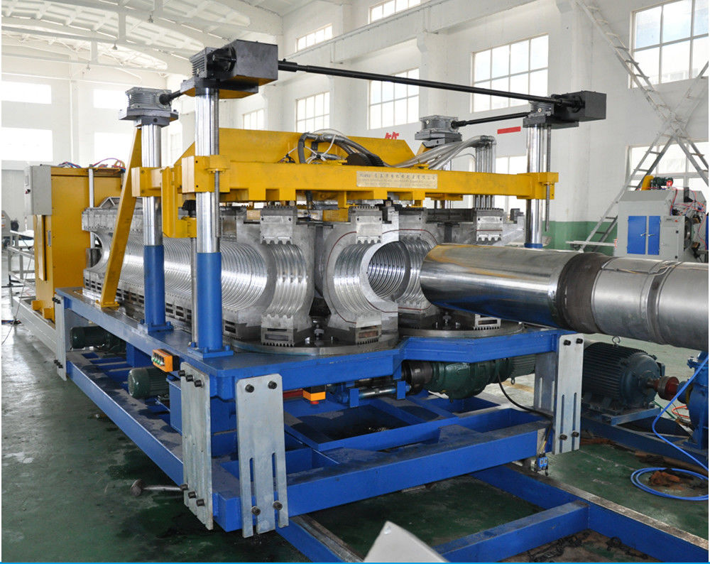 Corrugator, açık su soğutma sistemi ve vakum oluşturma sistemi ile donatılmış, zincir tipi şanzıman ile yatay yapı benimsenmiştir. Üretim hızını büyük ölçüde artırır. Hat üzerindeki hat fonksiyonu, yatırım maliyetini düşürür ve üretim verimliliğini artırır. Kalıp bloğu hareketi, senkronize üst ve alt mekanik tahrik sistemini ve gelişmiş kendi kendini yağlama sistemini benimser. Hareket doğruluğunu ve boru kalitesi stabilitesini sağlar.