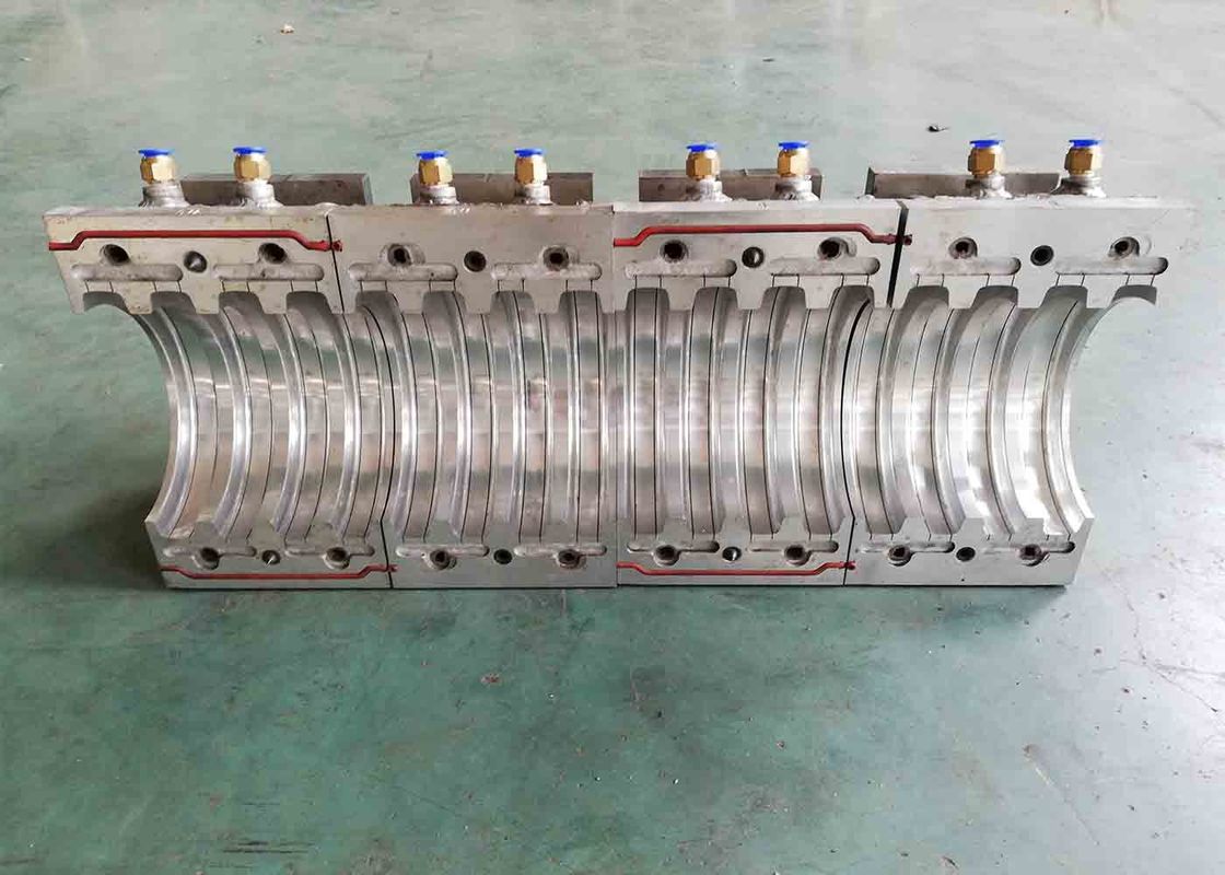 Kalıp blokları:Çift Cidarlı Oluklu Boru şekillendirme kalıpları, özel alüminyum alaşımlı malzemeden hassas döküm yoluyla oluşturulmuştur.Yüksek hassasiyet ve mukavemete ve mükemmel ısı dağılımına sahiptirler.
