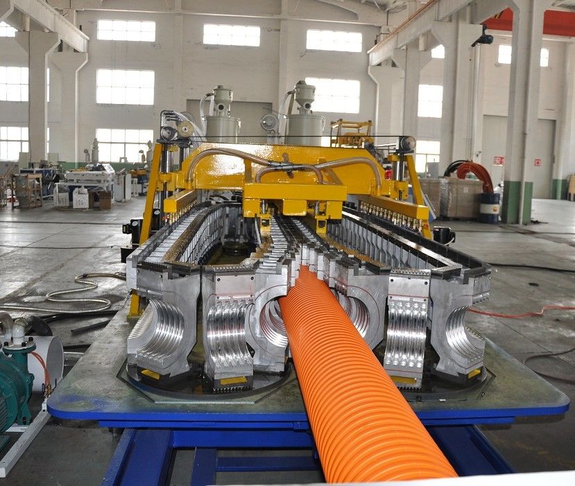 SBG250 (ID90mm - 250mm) çift cidarlı oluklu boru hattı benimser iki tek vidalı ekstruder, çift kanallı yapı, nitrürleme parlatma işlemi ölmek kafa.