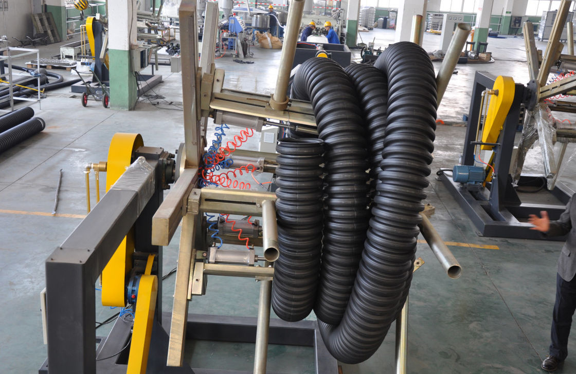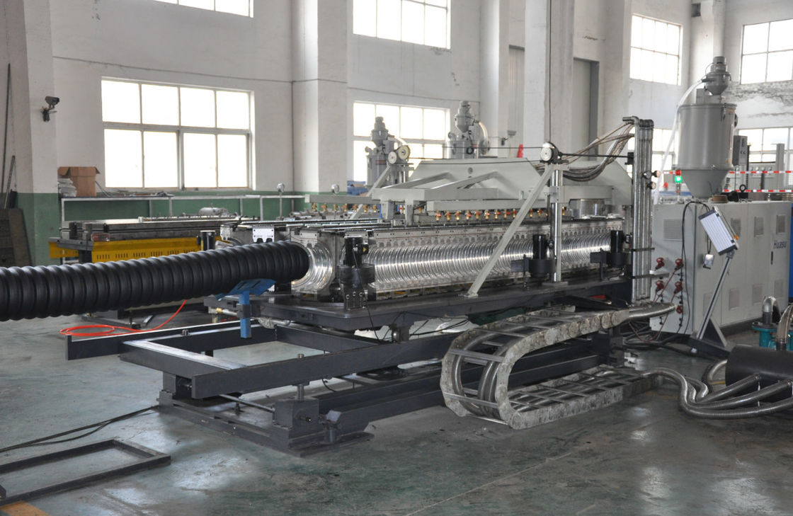 SBG250 (ID90mm - 250mm) çift cidarlı oluklu boru hattı benimser iki tek vidalı ekstruder, çift kanallı yapı, nitrürleme parlatma işlemi ölmek kafa.