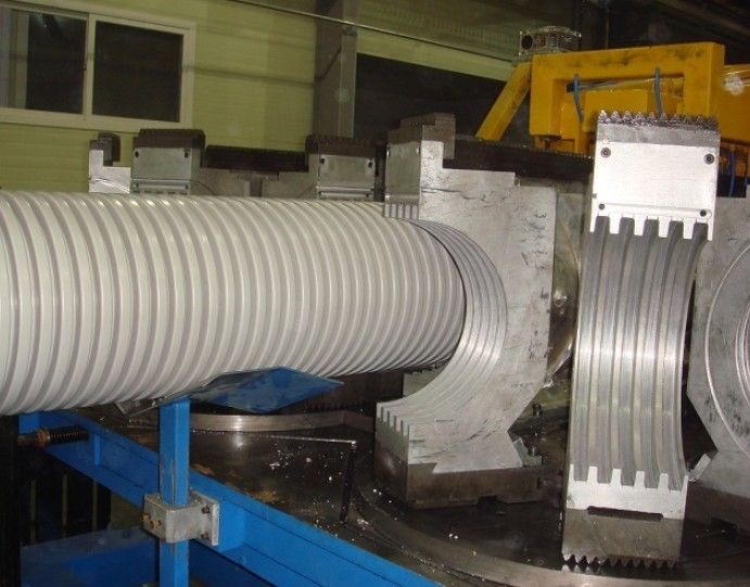 Kalıplama makinesi, kullanımı kolay ve görünüşte zarif olan yatay tam kapalı yapıya sahiptir.Dişli aktarma modülü sayesinde kalıp su ile soğutulur, ürünler hava ile soğutulur ve kalıplama yolu uzundur, böylece üretilen oluklu boru hızlı kalıplama hızına, tek tip oluklu şekle, tutarlı dikişlere ve pürüzsüz iç ve dış duvarlara sahiptir. Pürüzsüz, istikrarlı kalite ve yüksek hızlı çalışmayı sürdürebilir.