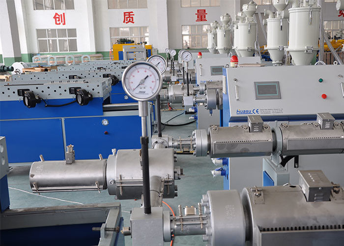 Bu hat, farklı boyutlarda oluklu boruları sürekli olarak ekstrüde edebilen SJ serisi ekstrüder, kalıp, kalıplama makinesi, hava soğutma ünitesi, sayaç, sarıcıdan oluşur.