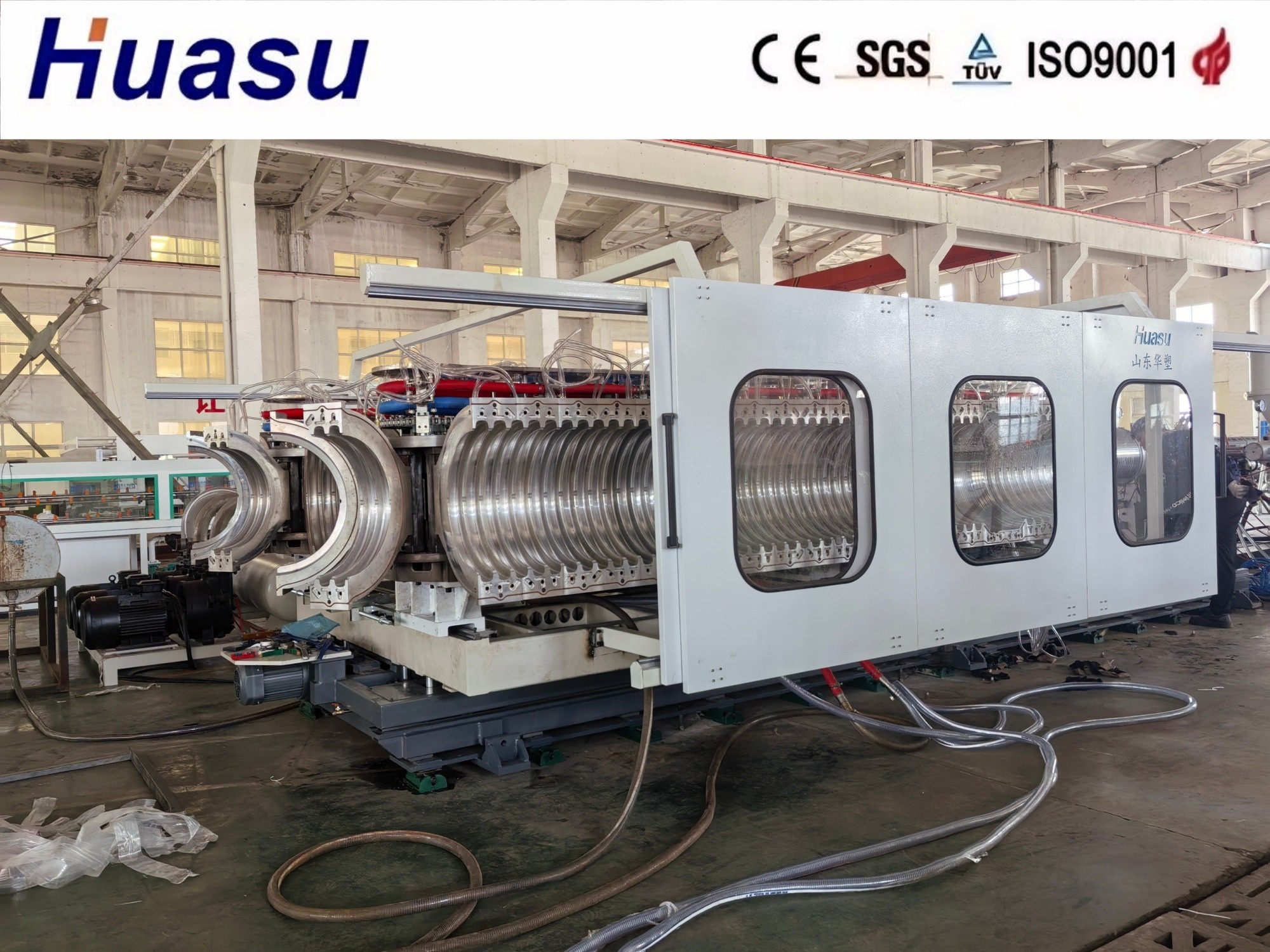 Çift duvarlı dalgalı boru hattı, Shandong HUASU'nun üçüncü nesil yükseltilmiş teknolojisini temsil ediyor.Bu gelişmiş sürüm, önceki modellerle karşılaştırıldığında ekstrüder çıkışında ve üretim hızında % 20-40 artış dahil olmak üzere önemli gelişmeler içeriyorBu geliştirmeler, daha verimli bir çevrimiçi çanlama sürecini sağlayarak, dalgalanmış boru ürünlerinin üstün kalitesini ve performansını sağlar.